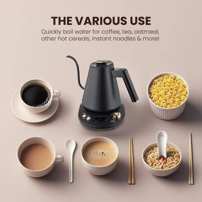 hot dishes such as instant cocoa, oatmeal, and soups. It offers the convenience of selecting preset temperatures or customizing to your preferred heat level, ensuring quick and precise boiling at the touch of a button.