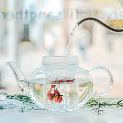 - Elegant handmade glass teapot that can be used for loose leaf tea or blooming teas and is the perfect choice for any tea lover. Its BPA & lead free and it’s large 42 oz / 1250 ml capacity, which holds 6-8 demitasse cups or 3-4 large teacups at a time and will serve the whole family.