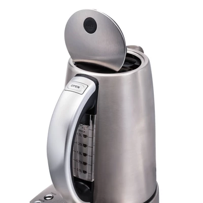 Stainless steel construction will make this 1.7 liter kettle a countertop mainstay. Interior LED lights in the illuminated water window glow a soft blue, letting you know that hot water is on the way.