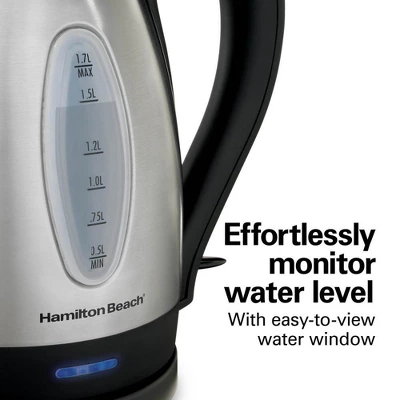 - PEACE OF MIND WITH AUTO SHUTOFF: The automatic shutoff feature with boil-dry protection keeps the Hamilton Beach electric kettle from scorching if the water level gets too low.