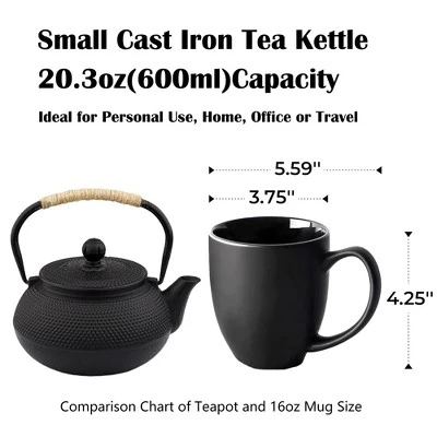 Itopfox Small Cast Iron Teapot With Stainless Steel Infuser For Loose Leaf Tea & Coffee, Stovetop Safe, Enamel Interior, Japanese Style, Black