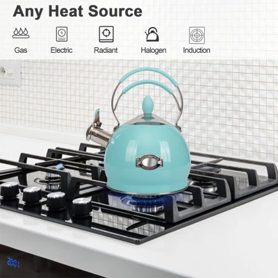 Discover this amazing whistling tea kettle! It’s crafted from professional food – grade stainless steel, ensuring rust and corrosion resistance, and is 100% PFOA free for your family’s health. With a 2.6 – quart capacity, it can boil enough water for about 12 cups (200ml each) in one go, ideal for family use or parties. When the water boils, it emits a loud whistle to alert you, even when you’re busy. The silicone – coated handle is both heat – resistant and ergonomic, and the simple – touch button on the handle makes it easy to control the spout. It’s suitable for multiple stovetops including induction, electric, gas, and radiant stoves. Use small or medium fire for efficient heating. This tea kettle simplifies your tea – making process and saves you time.
