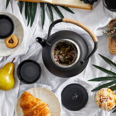 - Ideal Gift: Create unforgettable moments with friends and family using our 6-piece cast iron tea set. It includes a 40 ounce cast iron teapot with infuser, warming trivet, and four teacups. Achieve tea perfection with this meticulously balanced Japanese tea set, making it the perfect gift for tea enthusiasts and those who appreciate the art of tea