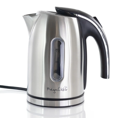 Make all your favorite hot beverages and more with the Mega Chef 1.2Lt. Stainless Steel Electric Tea Kettle. This kettle has a sleek design with a stainless steel finish that looks great in any kitchen. Heat up water worry free with the auto shut off feature! Clean up is a breeze and worry less about messes with the drip-free spout.