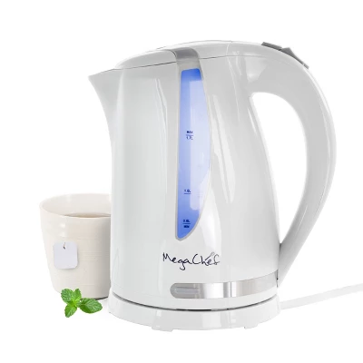 Make all your favorite hot beverages and more with the MegaChef 1.7Lt. Plastic Electric Tea Kettle. This kettle has a cordless jug which makes serving easy! This kettle features boil-dry protection, and worry less about messes with the drip-free spout. This kettle is perfect for homes, campers and dorm rooms. Compact size is ideal for any counter space while easily storable in a cabinet.