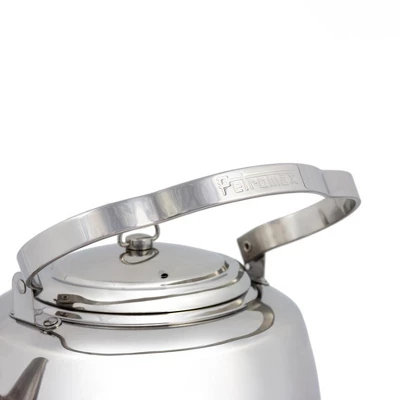 With the Petromax Teakettle made of high-quality stainless steel, water boils quickly and easily! Use the kettle directly over an open fire and in the embers as well as on an electric or gas cooker and induction. Its multiple-layered bottom ensures a perfect heat distribution. Origin: China. Thanks to the threefold bent movable handle, the kettle can be hanged over a fire and is pleasant to operate. It can even be fastened to your backpack for easy transport to the campsite. Enjoy hot reviving beverages or natural herbal infusions while on your outdoor adventure. The long spout enables precise pouring without a drop missing your cup. Durable material made of robust and temperature-resistant stainless steel. For indoor and outdoor use – suitable for all stove types and for open fire. Hand wash. Care Instructions: Before initial use and after each use, wash the teakettle with clear water and a mild detergent. Wipe any water residues with a clean and dry cloth..