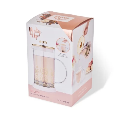 French style and press! This 34 oz. gold french press has a gold-plated stainless steel frame to serve the hottest drinks while staying cool to the touch. 34 oz. capacity. Holds 34 oz. Borosilicate glass and gold finish. Brews tea and coffee within minutes.