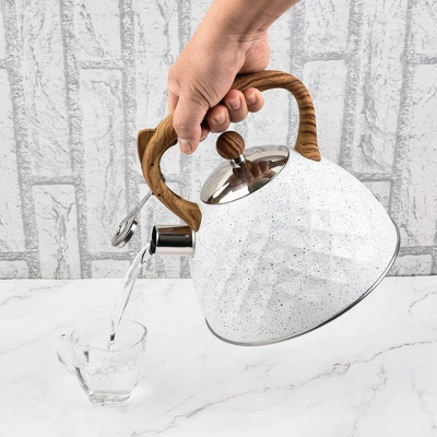 - WHISTLING SPOUT: Our stylish kettle features a functional whistling spout. This tea kettle will alert you when the water reaches the ideal boiling point. Note: The kettle will sound when the water is boiling as long as it is filled to 80% of its capacity.